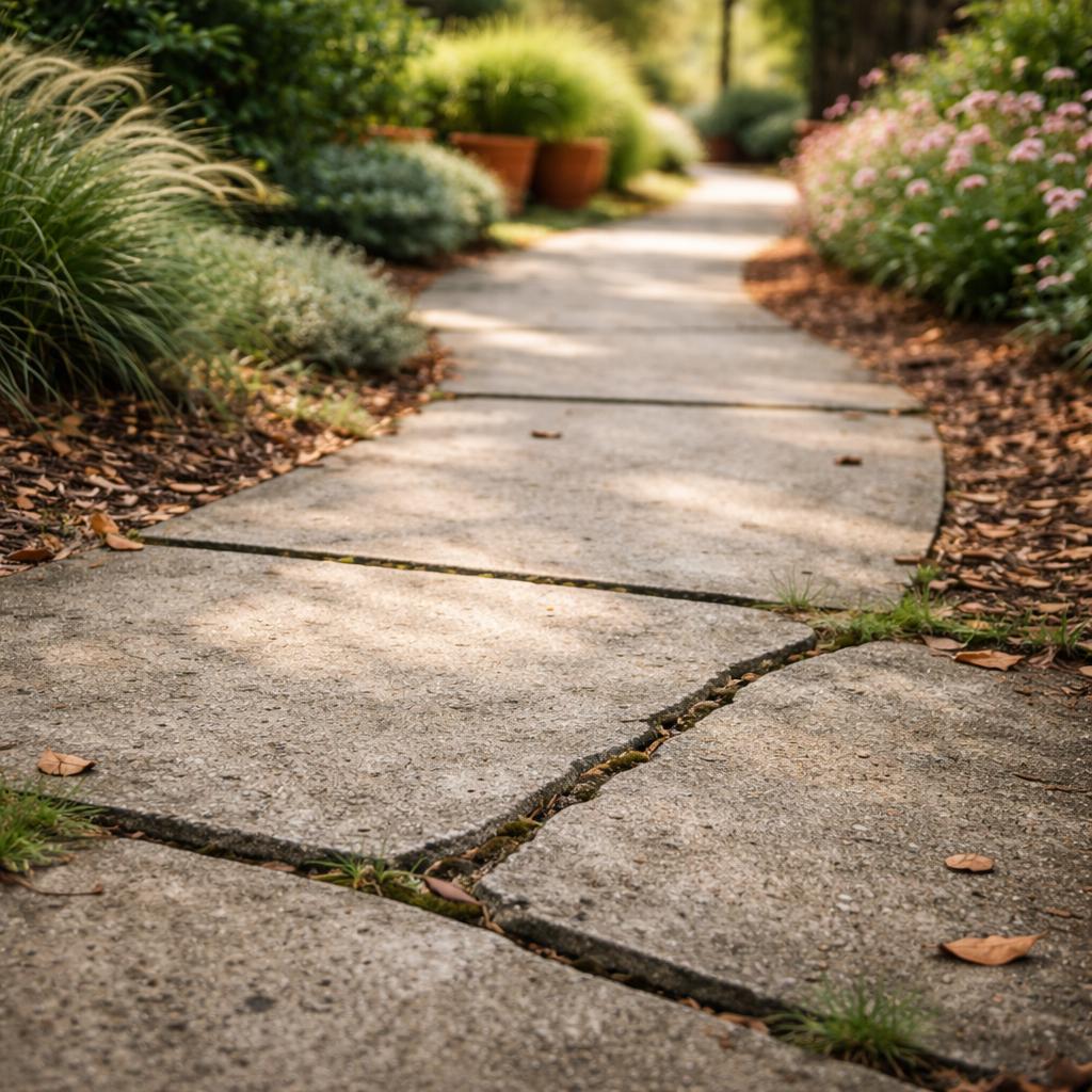 Один из распространенных сценариев — использование бетонных дорожек как временного решения, которое со временем должно быть заменено. На практике такие дорожки часто остаются надолго, потому что демонтаж монолита требует усилий и редко входит в планы владельцев. В результате временное решение начинает определять облик сада, даже если изначально этого не предполагалось.