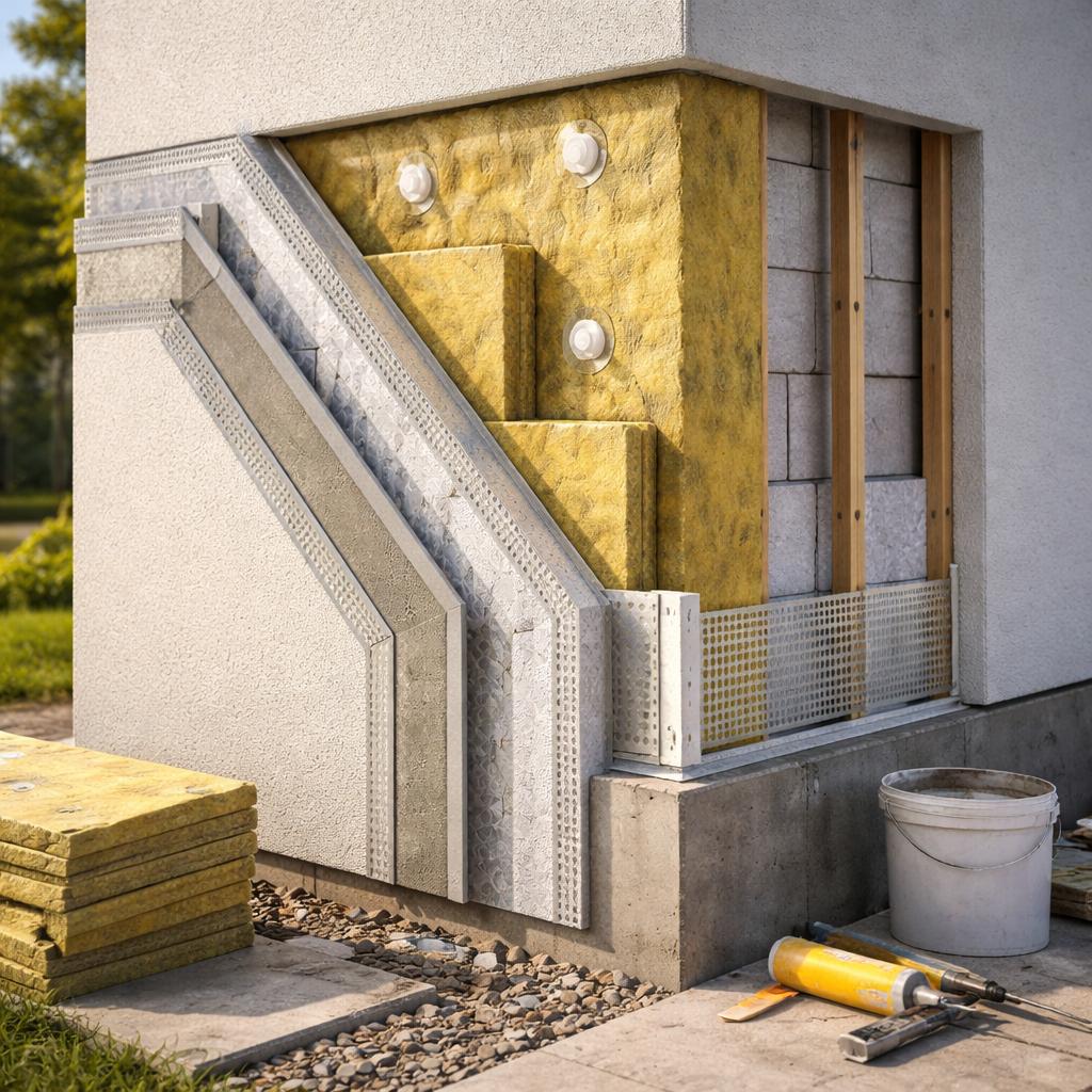 Кроме того, фасадный пирог значительно влияет на энергозатраты. Качественная теплоизоляция снижает потребность в отоплении зимой и в кондиционировании летом. С другой стороны, неправильный выбор материалов или недостаточная защита может привести к повышению влажности, образованию конденсата, а в некоторых случаях — даже к разрушению наружных стен.
