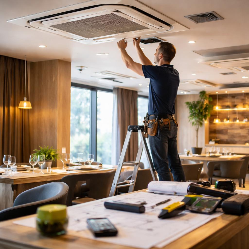 Для заведений с полноценной кухней особенно важна не только температура, но и правильная вентиляция. Кондиционер сам по себе не решает проблему запахов, дыма, пара и продуктов горения. Он работает в связке с вентиляцией, а не заменяет ее.