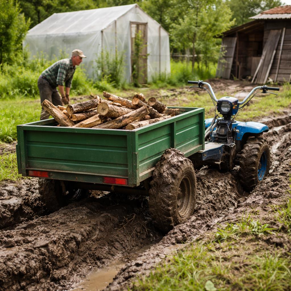 Тележка напрямую взаимодействует с поверхностью: её колёса первыми «чувствуют» колею, её рама реагирует на перекосы, а её масса задаёт инерцию всей связки. Поэтому даже при достаточной мощности мотоблока перевозка может становиться тяжёлой именно из-за особенностей тележки, а не из-за тяговых возможностей техники.