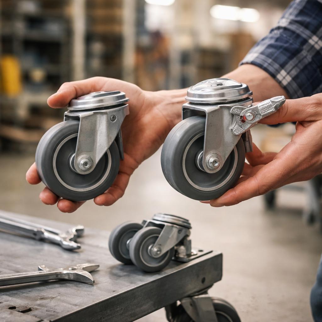 Если тележка должна оставаться неподвижной в определённой точке, без колёс с тормозом не обойтись.