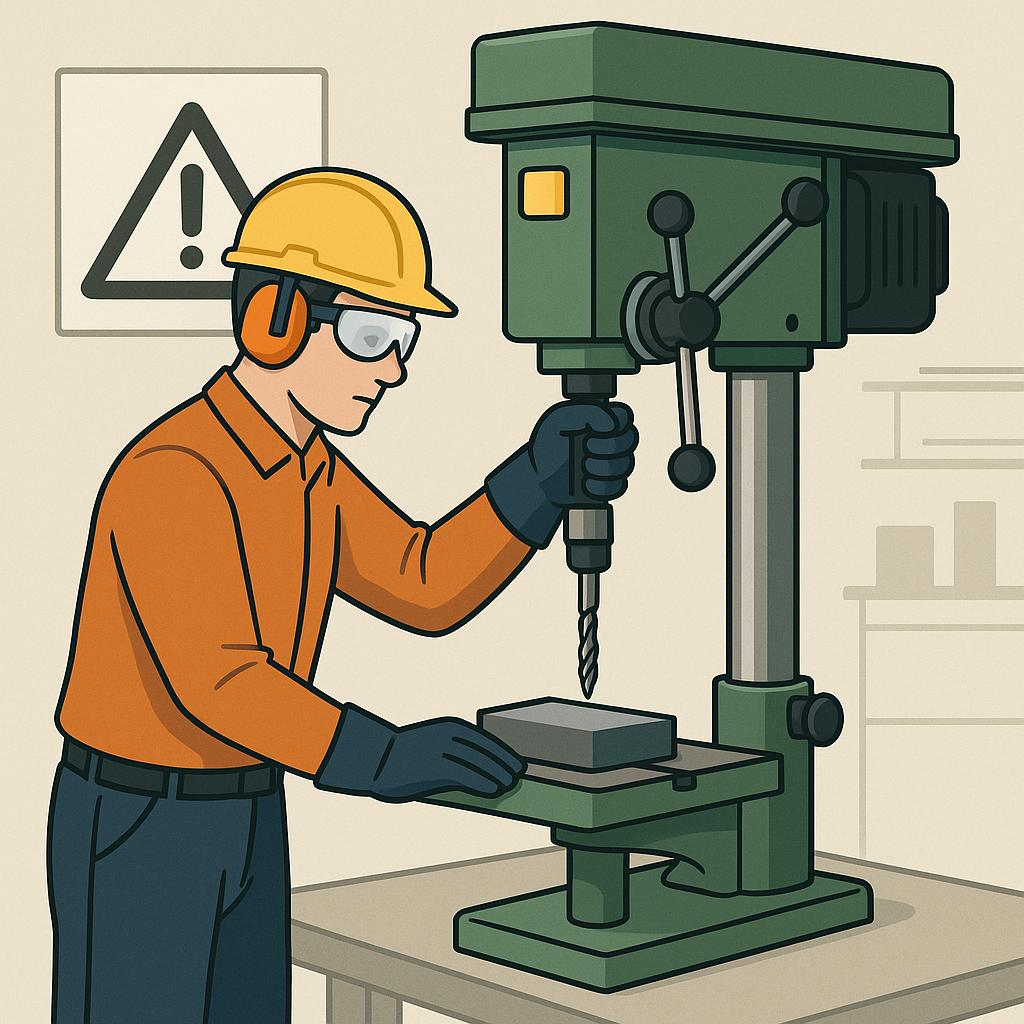 Наиболее важным аспектом безопасности при работе на сверлильном станке является надежное крепление заготовки. Попытки удерживать заготовку руками или слабое крепление являются основной причиной серьезных травм. Анализ инцидентов, проведенный NIOSH, показал, что 58% серьезных травм, связанных со сверлильными станками, произошли из-за незакрепленных заготовок. Незакрепленная заготовка может быть вырвана вращающимся сверлом, начать вращаться вместе с ним или быть отброшенной с большой силой, что приведет к тяжелым травмам оператора или повреждению оборудования. Правильная фиксация обеспечивает точность сверления и предотвращает опасные ситуации.