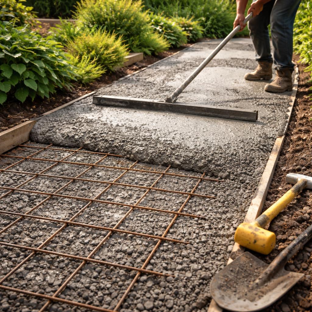 Задача владельца участка — учесть множество факторов, чтобы бетонная дорожка прослужила долго и не потребовала частых ремонтов. Толщина бетона — это первый и важный параметр, который стоит определять ещё на этапе планирования.